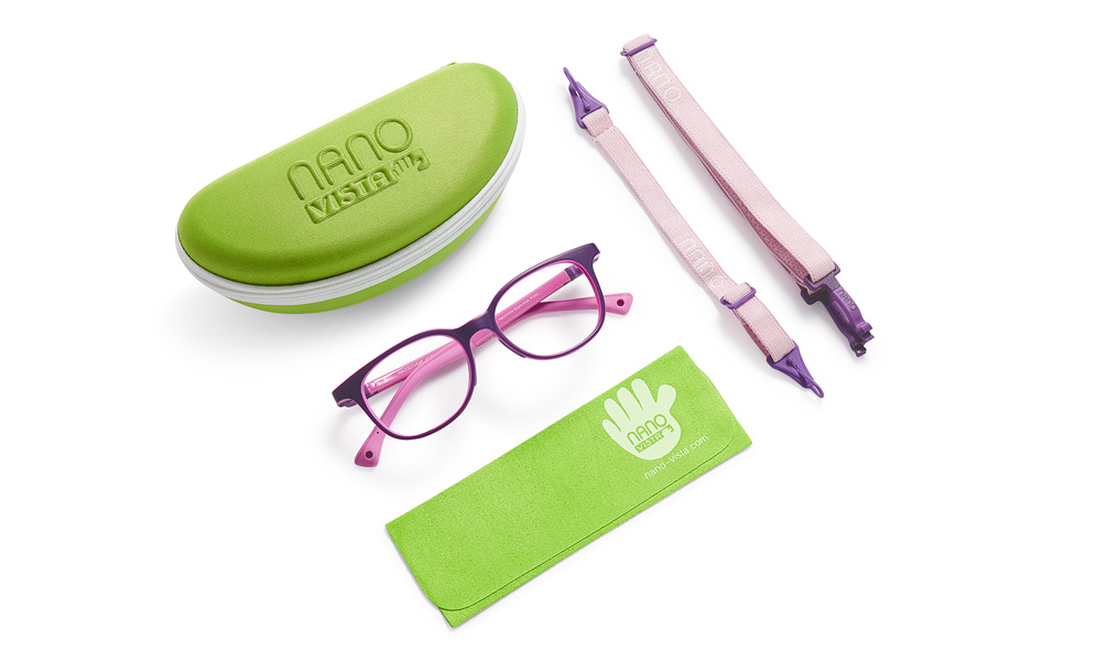 Toate perechile de ochelari Nano au doua sisteme de fixare: obisnuitele brate pentru zilele de scoala si snurul flexibil pentru activitati in aer liber.  Balamalele detasabile asigura fixarea acestor sisteme si sunt un element de rezistenta in caz de impact.